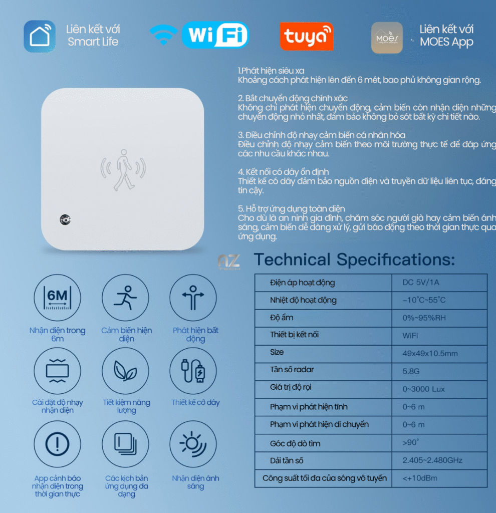 | Phạm vi phát hiện di chuyển | 0~6 m |