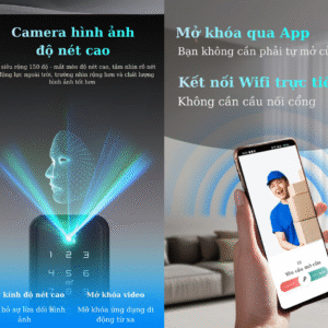 | Tính năng thông minh | Mở khóa từ xa, Quản lý và phân quyền người dùng, Camera giám sát tình hình ngoài cửa, Mật khẩu ảo |