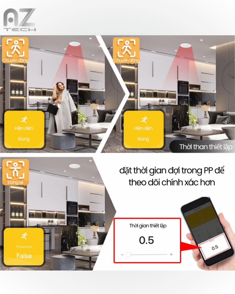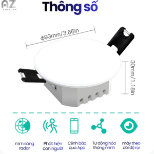 | Tính năng | Sóng radar, Phát hiện con người, Cảnh báo qua App, Tự động hóa thông minh, Theo dõi độ rọi |