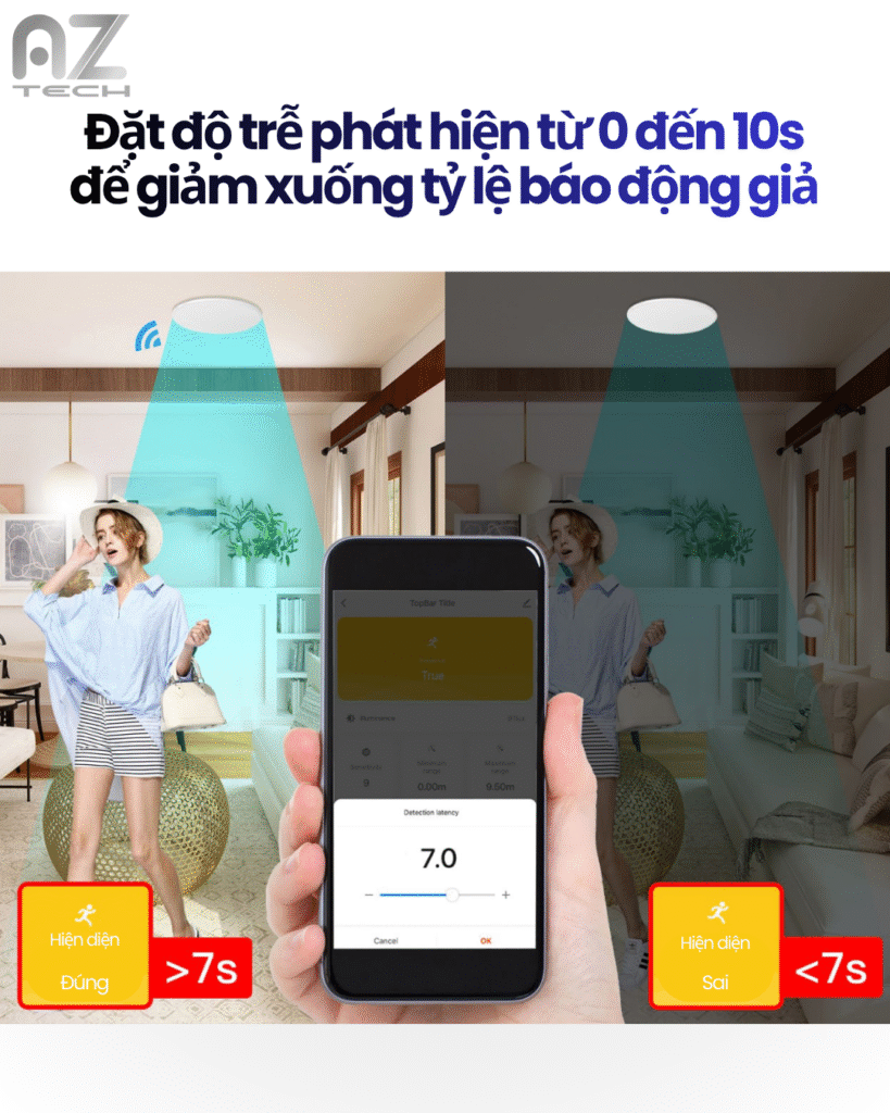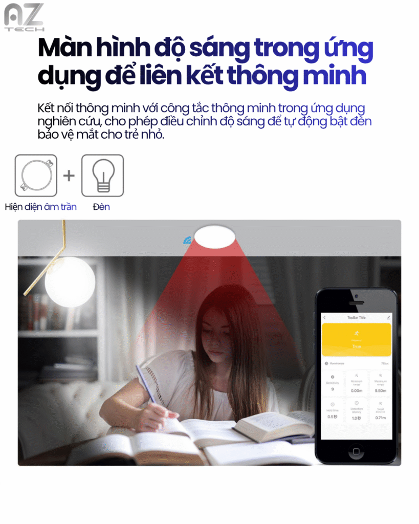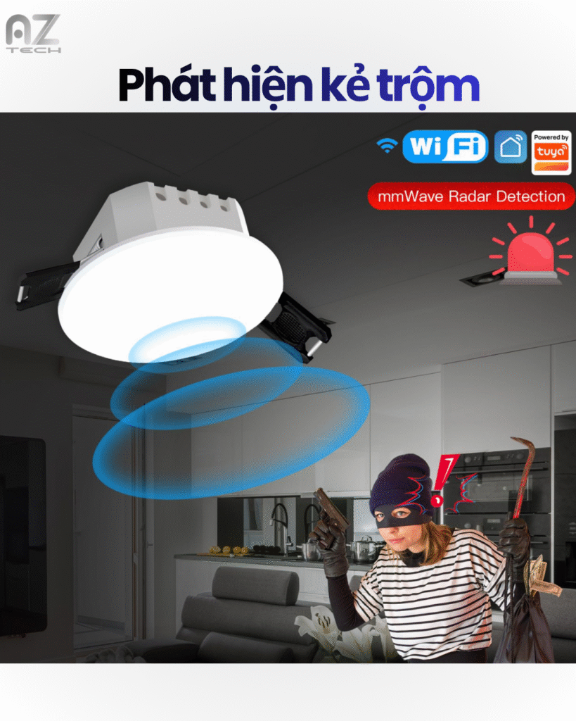 | Tính năng | Sóng radar, Phát hiện con người, Cảnh báo qua App, Tự động hóa thông minh, Theo dõi độ rọi |