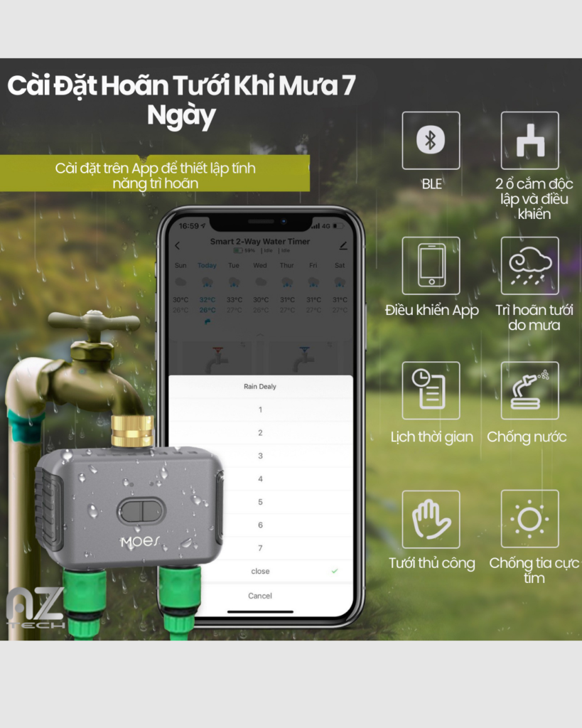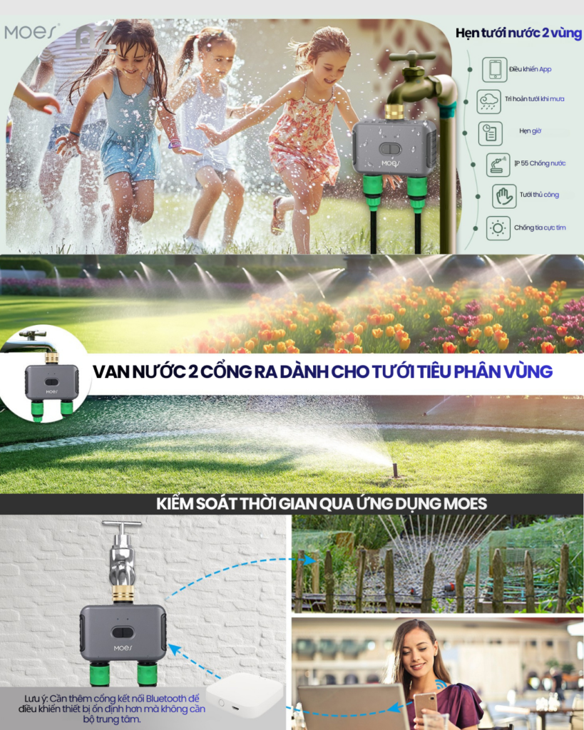 Bộ hẹn giờ tưới nước thông minh 2 vòi MOES